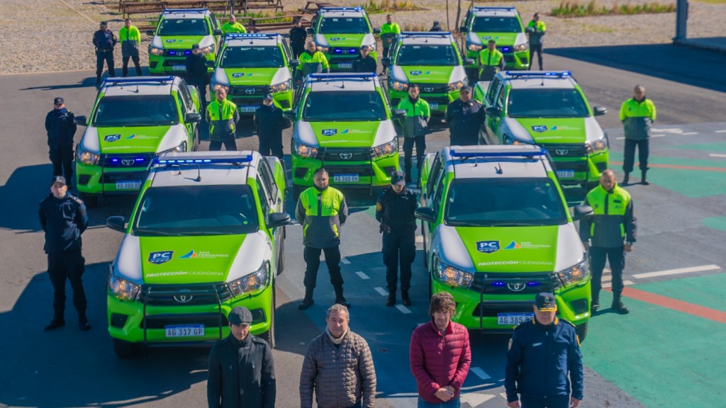 Respecto a las unidades adquiridas con fondos municipales, 10 camionetas Toyota Hilux 0km con el equipamiento necesario para el patrullaje, el Jefe Comunal destacó: “Seguimos colaborando con la responsabilidad que tiene la Provincia de Buenos Aires en materia de seguridad. Hace muchos años que San Fernando trabaja poniendo el acento en la prevención en estos años con toda la flota de patrullas, las 1.650 cámaras del Centro de Operaciones que nos convierten en el distrito con mejor promedio por habitante -1 cámara cada 104 personas-, las postas policiales, los botones de pánico, tótems de seguridad, lectores de patentes y más elementos”.
