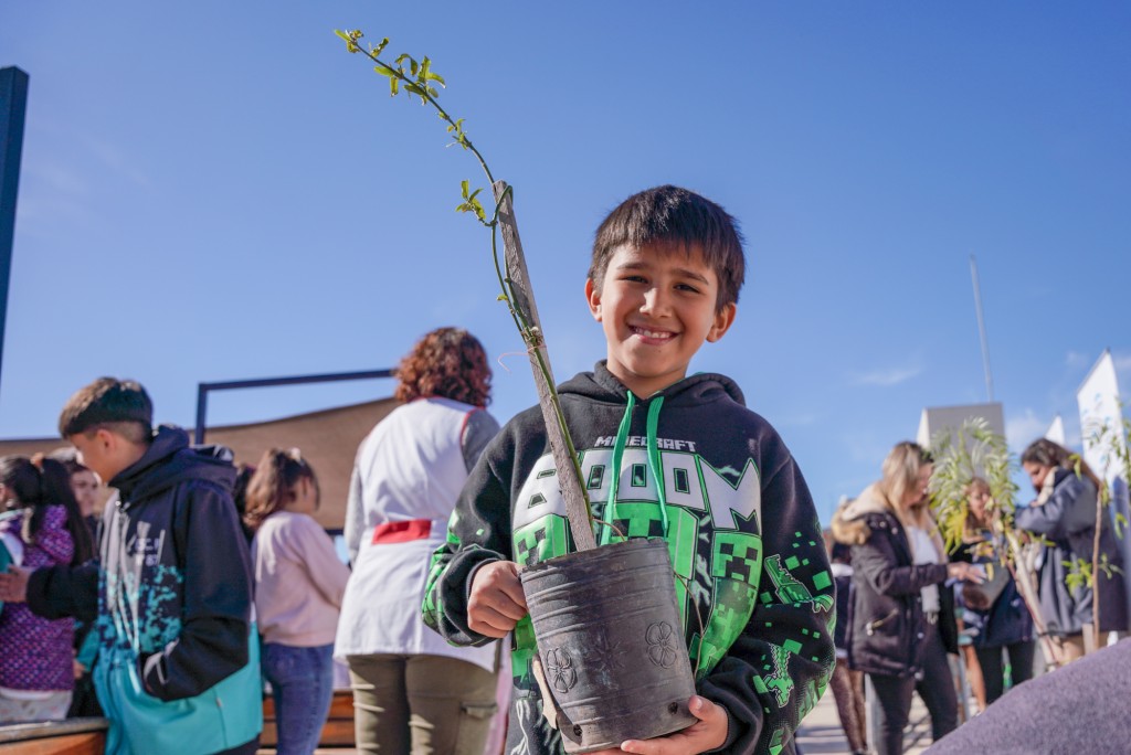 La iniciativa de forestación comunitaria “San Martín Planta” se lanzó en la Escuela Primaria N°87 de Barrio Libertador, donde los estudiantes recibieron el primer kit de germinación con semillas, plantines, tierra, herramientas de jardinería e información para realizar la primera plantación de árboles nativos.