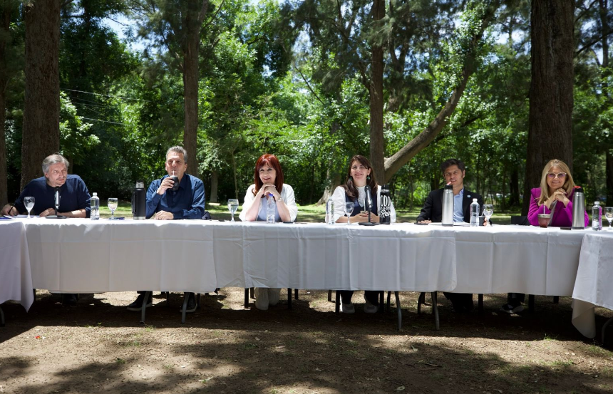 El gobernador Axel Kicillof fue parte del encuentro en el que estuvieron Máximo Kirchner, líder del espacio; la presidenta del PJ, Cristina Fernández; y el excandidato a Presidente de Unión por la Patria, Sergio Massa.