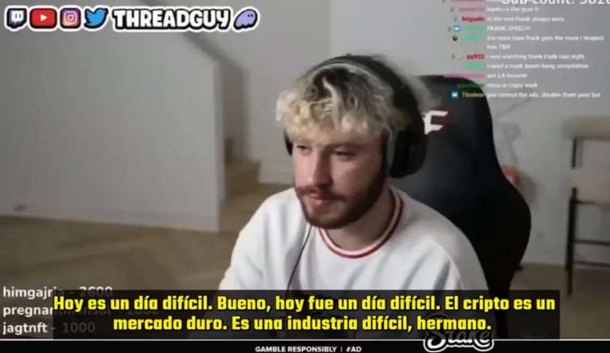 “Hoy es un día difícil. El cripto es un mercado duro. Es una industria difícil. Muchas veces tienes que tomar grandes decisiones en momentos de enormes fluctuaciones con muy poca información”, inició Thread Guy en su stream.