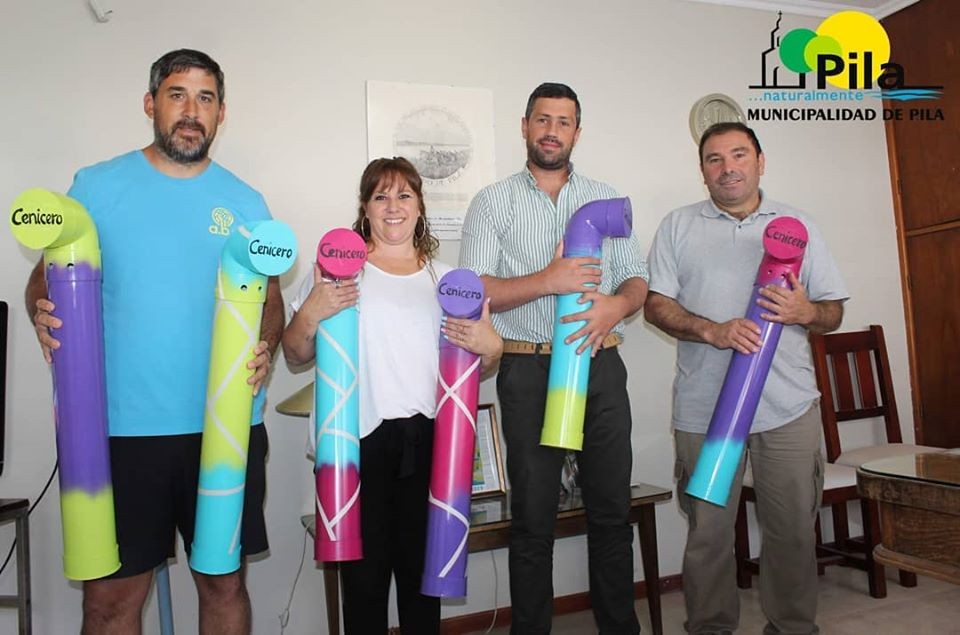 Se comenzará con la colocación de los colilleros en los espacios públicos de la ciudad, este martes en el predio de la pileta municipal donde junto con jóvenes de las escuelas de Pila iniciamos en conjunto este proceso.