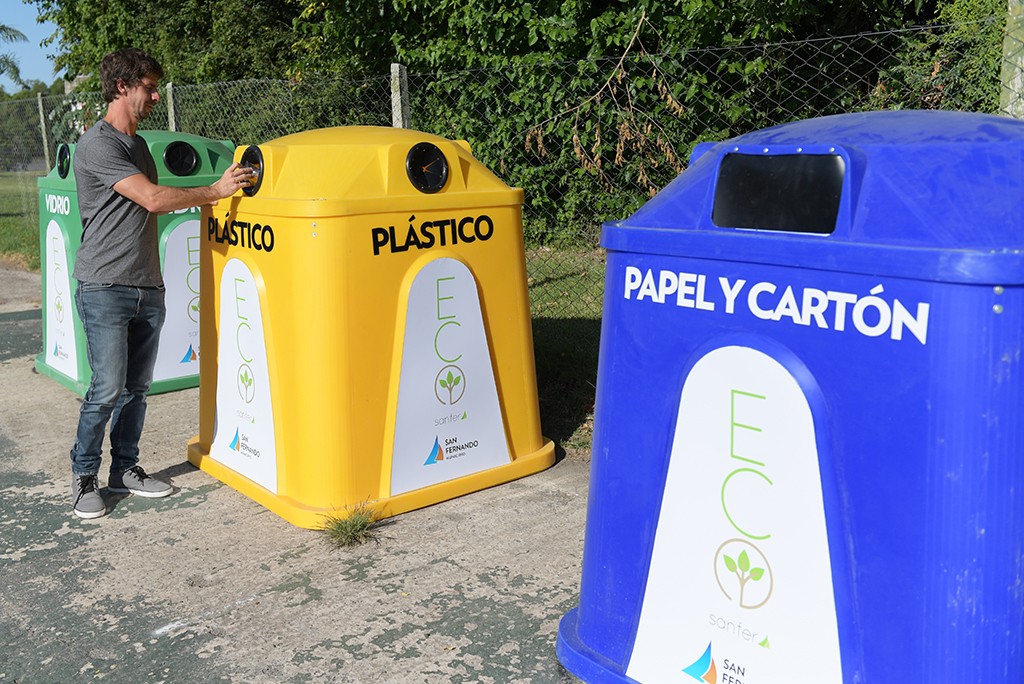 El Municipio está colocando las primeras 50, de colores azul (cartón y papel), amarillo (plástico) y verde (vidrio) en puntos clave del distrito, para que los vecinos puedan separar sus residuos, como parte del nuevo plan “EcoSanfer” para potenciar acciones ambientales.